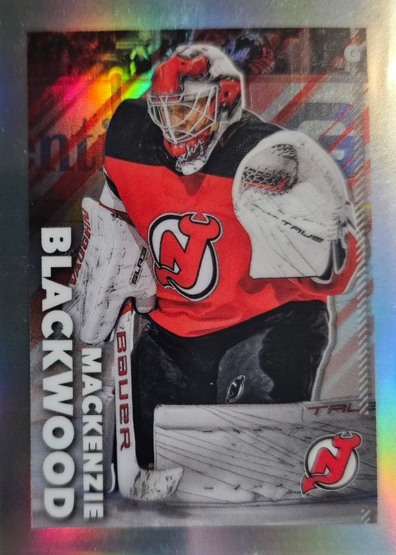 This card is 1 of 6 Mackenzie Blackwood's card variations in the 2022 Topps Chrome NHL Sticker Collection set being tracked by Sports Card Investor, including Base, Gold Refractor /50, Orange Refractor /25, Red Refractor /5, and Superfractor /1.
