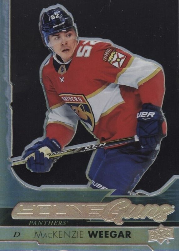 This card is 1 of 14 MacKenzie Weegar's card variations in the 2017 Upper Deck set being tracked by Sports Card Investor, including Young Guns Base, Gold Rainbow Foil, Silver Foil, Young Guns - Gold Rainbow Foil, and Young Guns - Jumbo.