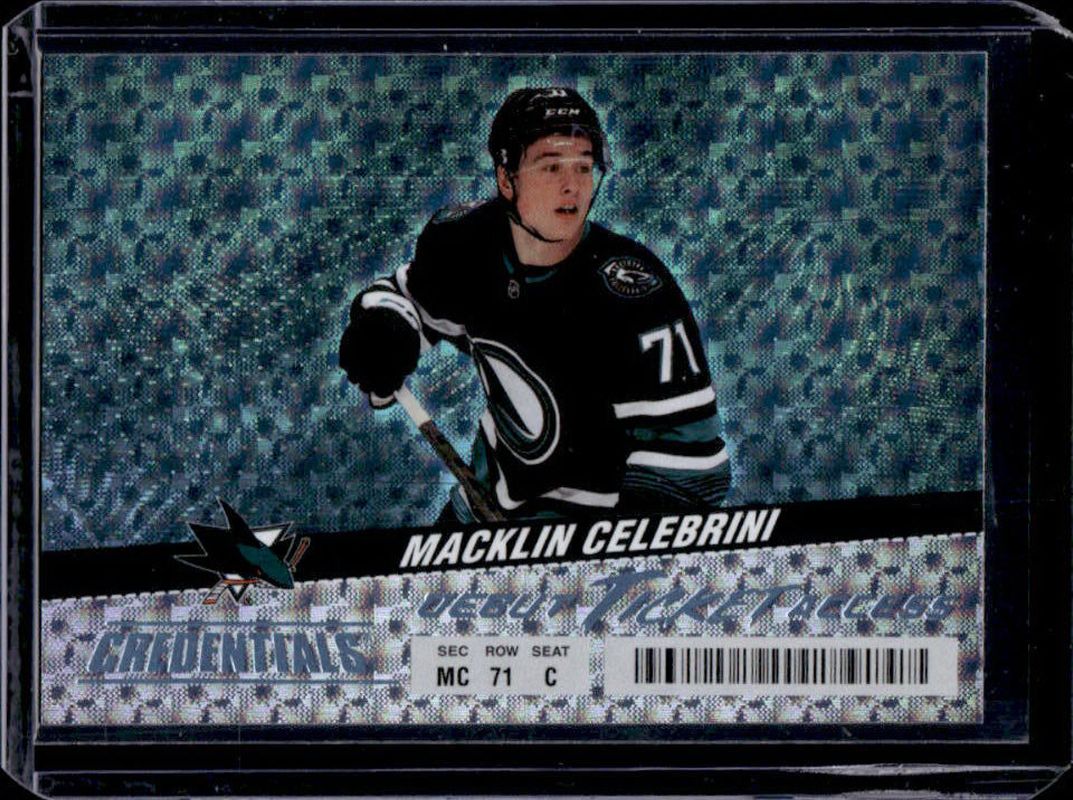 The Macklin Celebrini 2024 Upper Deck Credentials #111 Horizontal Rookie card is 1 of 30 Macklin Celebrini's card variations in the 2024 Upper Deck Credentials set being tracked by Sports Card Investor, including Horizontal Auto /99, Horizontal Red /99, Horizontal Pink /25, Horizontal Auto Purple /15, and Horizontal Purple /10.