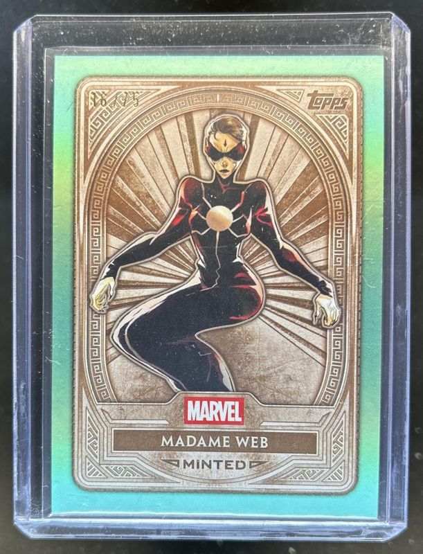 The Madame Web 2025 Topps Mint #9 Green Mint Foil /75 card is 1 of 16 Madame Web's card variations in the 2025 Topps Mint set being tracked by Sports Card Investor, including Base, Gold Foil /50, Orange Foil /25, Black Foil /10, and Red Foil /5.