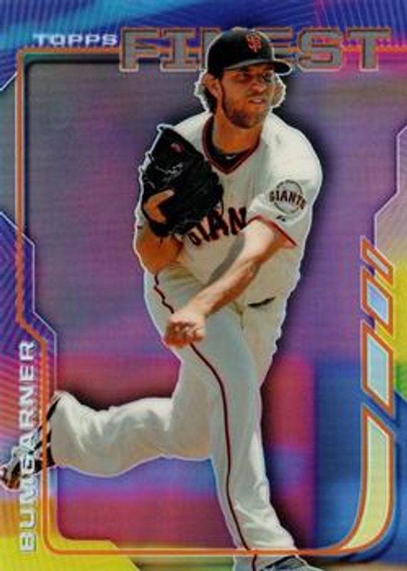 The Madison Bumgarner 2014 Topps Finest #19 Refractor card is 1 of 16 Madison Bumgarner's card variations in the 2014 Topps Finest set being tracked by Sports Card Investor, including Base, Orange Refractor, X Fractor, Green Refractor /199, and Blue Refractor /125.