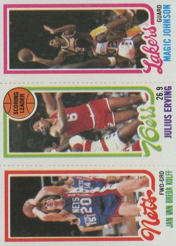 Magic Johnson Julius Erving Jan Van Breda Kloff 1980-81 Topps Rookie Card PSA 8