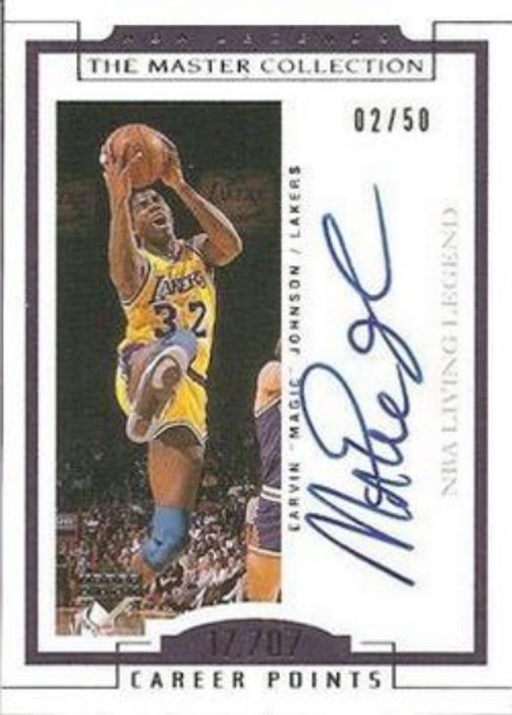 The Magic Johnson 2000 Upper Deck Legends Master Collection #EL1 Living Legends Autographs /50 card is 1 of 6 Magic Johnson's card variations in the 2000 Upper Deck Legends Master Collection set being tracked by Sports Card Investor, including #3 Base /200, #EL2 Living Legends Autographs /50, #EL3 Living Legends Autographs /50, #EL4 Living Legends Autographs /50, and #EJA Mystery Pack Inserts /1.