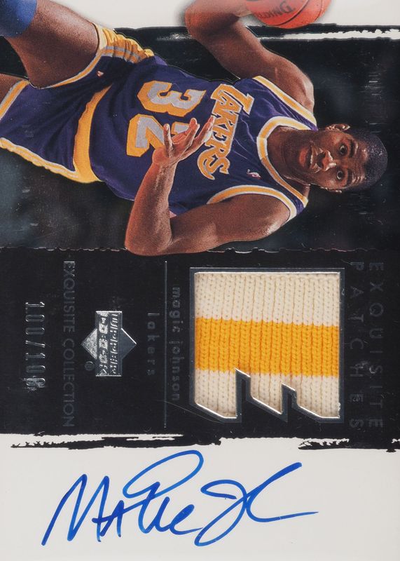 The Magic Johnson 2003 Upper Deck Exquisite Collection #AP-MA Patches Autographs /100 card in Raw condition has not changed in price in the last 30 days and was last sold for $911.00 .