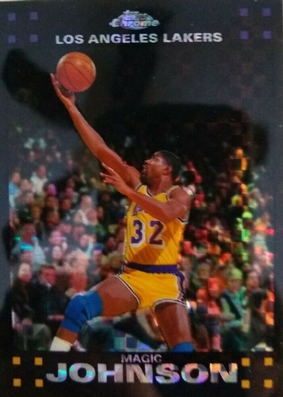 This card is 1 of 9 Magic Johnson's card variations in the 2007 Topps Chrome set being tracked by Sports Card Investor, including Refractor /999, Orange Refractor /199, White Refractor /99, 1957-58 Variation - Refractor /999, and 1957-58 Variation - Orange Refractor /199.