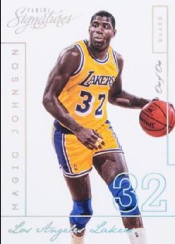 The Magic Johnson 2013 Panini Signatures #216 Platinum /1 card is 1 of 60 Magic Johnson's card variations in the 2013 Panini Signatures set being tracked by Sports Card Investor, including #211 Base /15, #220 Base /15, #219 Base /15, #218 Base /15, and #217 Base /15.
