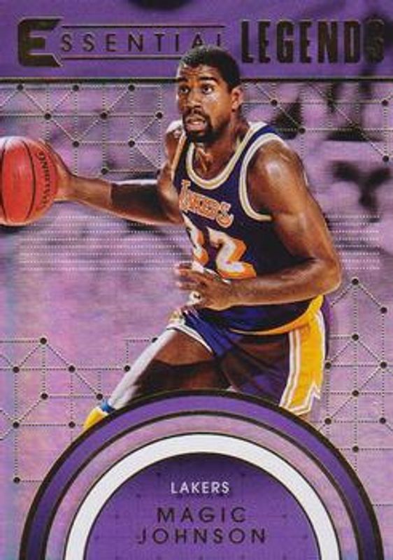 The Magic Johnson 2017 Essentials #EL-25 Essential Legends card is 1 of 12 Magic Johnson's card variations in the 2017 Essentials set being tracked by Sports Card Investor, including Kings of the Court, Called to Excellence /49, Glorified Signatures /49, Glorified Signatures - Gold /35, and Called to Excellence - Silver /25.