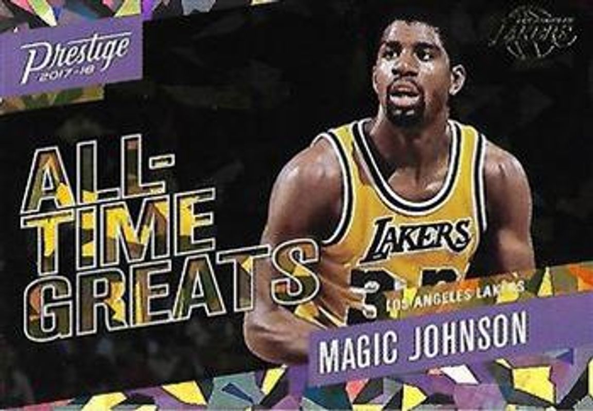 The Magic Johnson 2017 Prestige #2 All Time Greats - Crystal card is 1 of 13 Magic Johnson's card variations in the 2017 Prestige set being tracked by Sports Card Investor, including All Time Greats, All Time Greats - Horizon, All Time Greats - Mist, All Time Greats - Rain, and Old School Signatures.