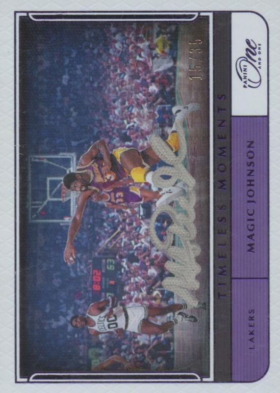 The Magic Johnson 2021 One and One #TM-MJN Timeless Moments Autographs - Purple /35 card in Raw condition has not changed in price in the last 30 days and was last sold for $366.00 .