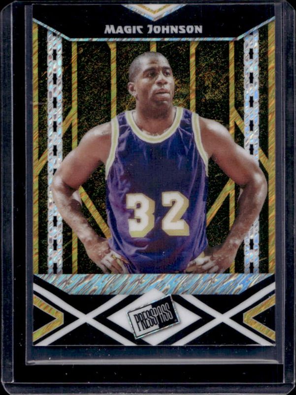 Magic Johnson 2024 Leaf Collective #PPB-113 Press Pass Base - Gold Shimmer /1 RAW Price Guide