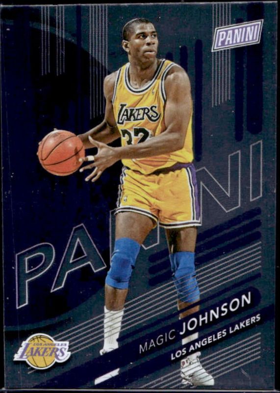 The Magic Johnson 2024 Panini NSCC Wrapper Redemption #43 Foil card is 1 of 10 Magic Johnson's card variations in the 2024 Panini NSCC Wrapper Redemption set being tracked by Sports Card Investor, including Base, Orange /199, Red /99, Blue /50, and Cracked Ice /25.