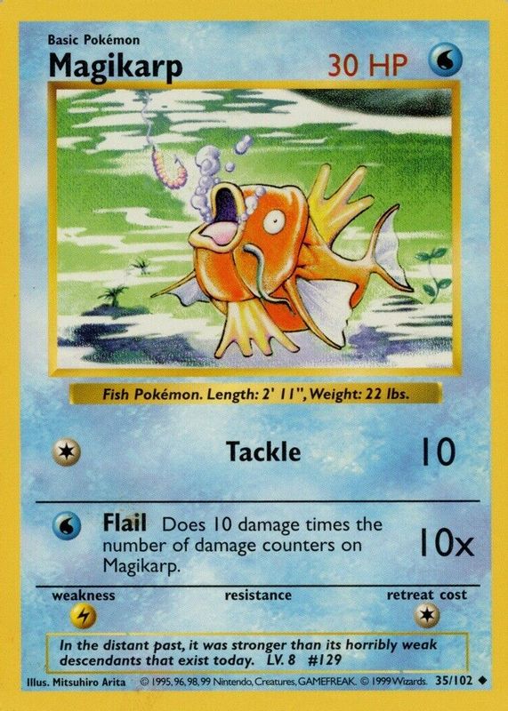 1999 Pokémon TCG - Magikarp - Base Set - Shadowless - MP - 35/102