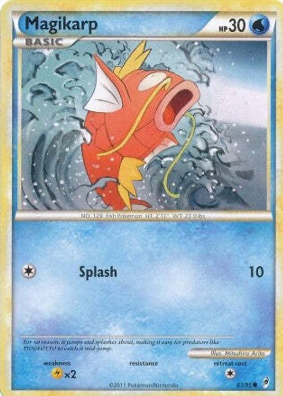 The Magikarp 2011 Call of Legends #61/95 Base card in Raw TCG (Near Mint) condition has moved down -$4.00 (-80.2%) in the last 30 days and was last sold for $0.99 .