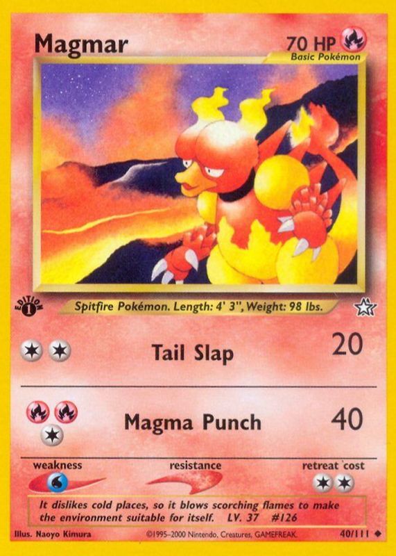 Magmar 2000 Neo Genesis #40/111 1st Edition RAW TCG (NEAR MINT) Price Guide
