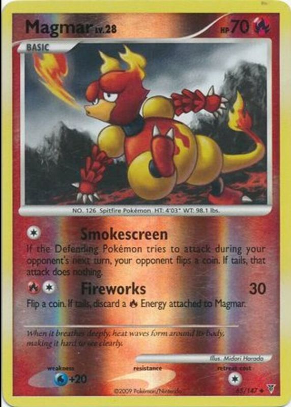 Magmar 2009 Platinum: Supreme Victors #065/147 Reverse Holo RAW TCG (LIGHTLY PLAYED) Price Guide