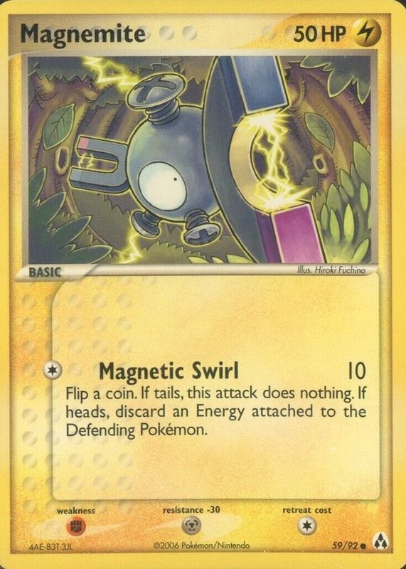 The Magnemite 2006 EX: Legend Maker #59/92 Base card in Raw TCG (Near Mint) condition has moved down -$13.01 (-86.7%) in the last 30 days and was last sold for $1.99 .