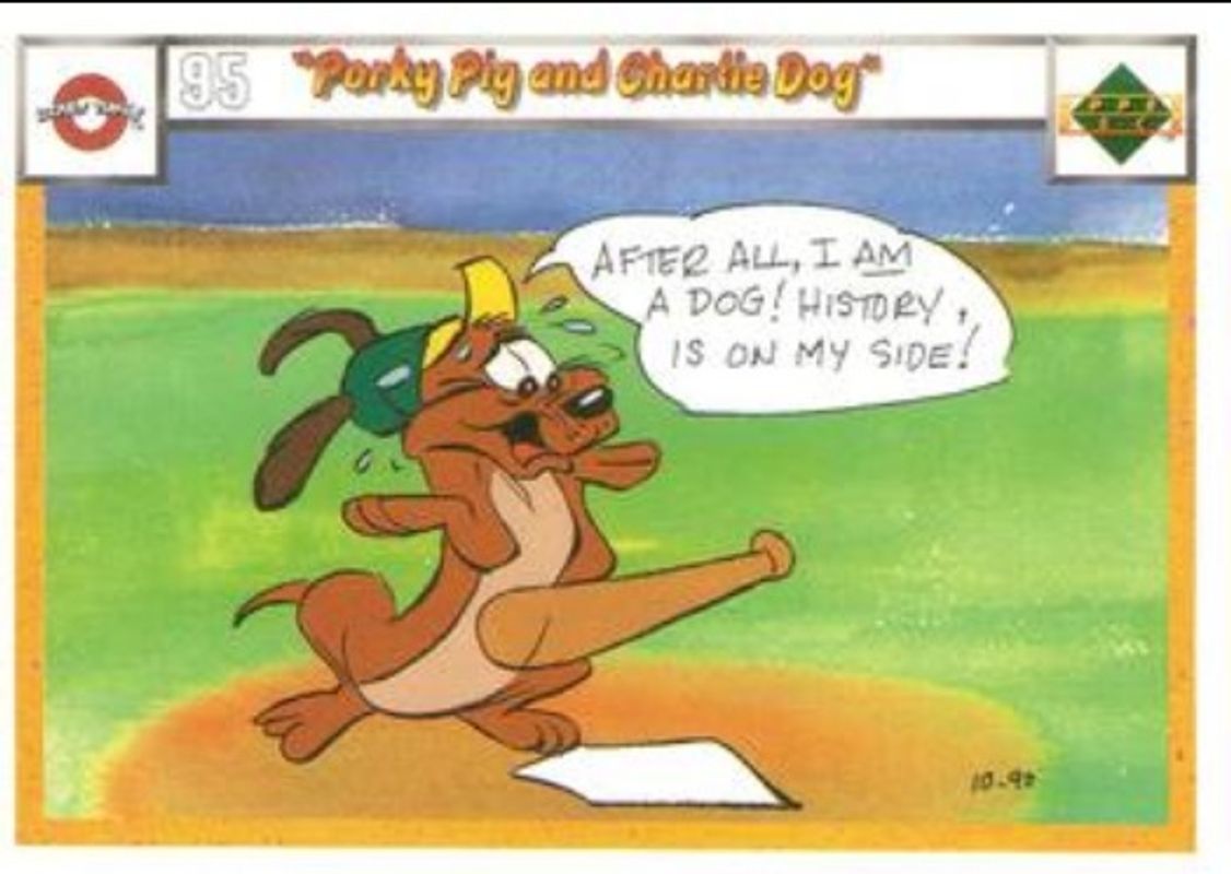 Other popular players in the 1990 Upper Deck Comic Ball set include Squeeze Play, Porky Pig and Charlie Dog, Acme Battle, Curve Ball, and Father Knows Worst.
