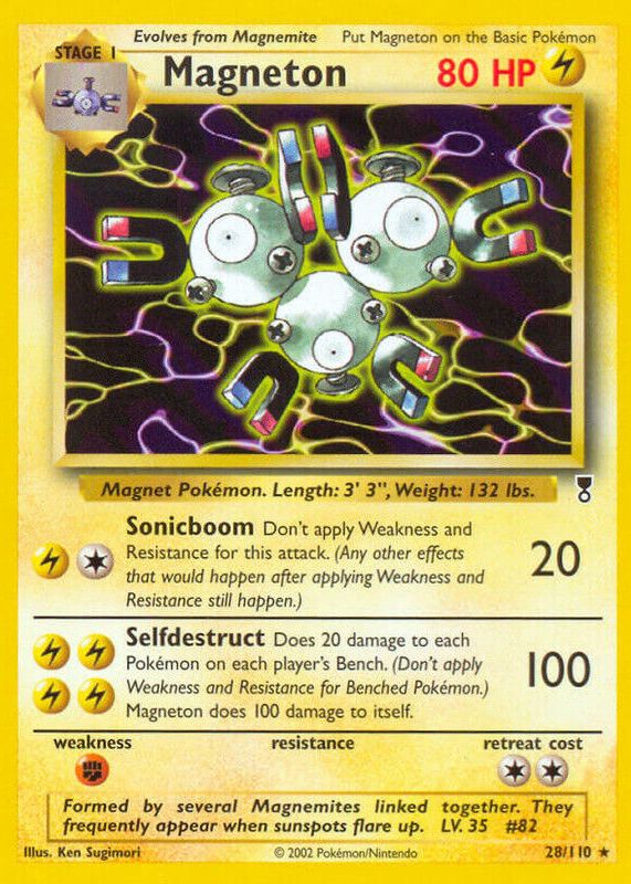 The Magneton 2002 Legendary Collection #28 Base card in Raw TCG (Near Mint) condition has moved up $4.35 (+85.1%) in the last 30 days and was last sold for $9.46 .