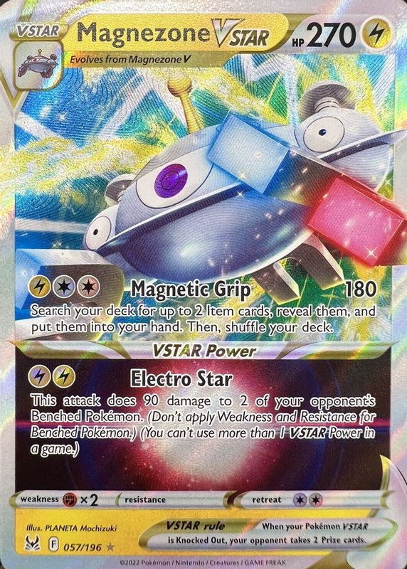The Magnezone VSTAR 2022 Sword & Shield: Lost Origin #057/196 Holo card in Raw TCG (Near Mint) condition has moved up $0.02 (+1.3%) in the last 30 days and was last sold for $1.57 .