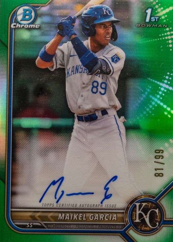 MAIKEL GARCIA AUTO 1st 2022 Bowman Chrome GREEN REFRACTOR #/99 Royals RC