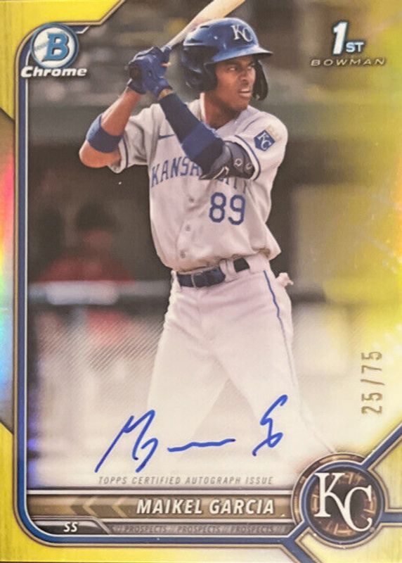 Maikel Garcia 2022 1st Bowman Chrome AUTO Prospect YELLOW REFRACTOR /75 RC