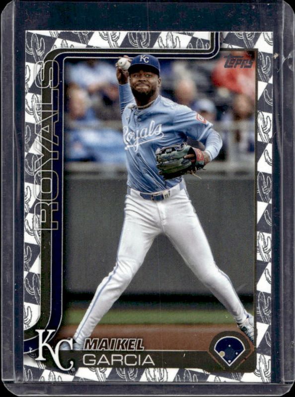 The Maikel Garcia 2025 Topps #135 Spring Training card is 1 of 75 Maikel Garcia's card variations in the 2025 Topps set being tracked by Sports Card Investor, including Base, Aqua Holo Foil, Diamante Foil, Holo Foil, and Pink Diamante Foil.