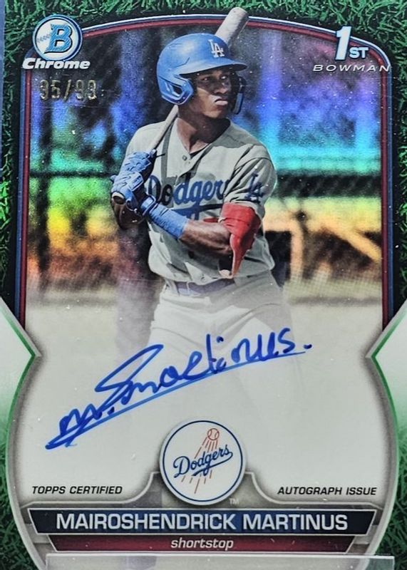Best Prices Available For Sale of Mairoshendrick Martinus 2023 Bowman #CPA-MMA Chrome Prospect Auto - Green Grass Refractor /99 (1st)