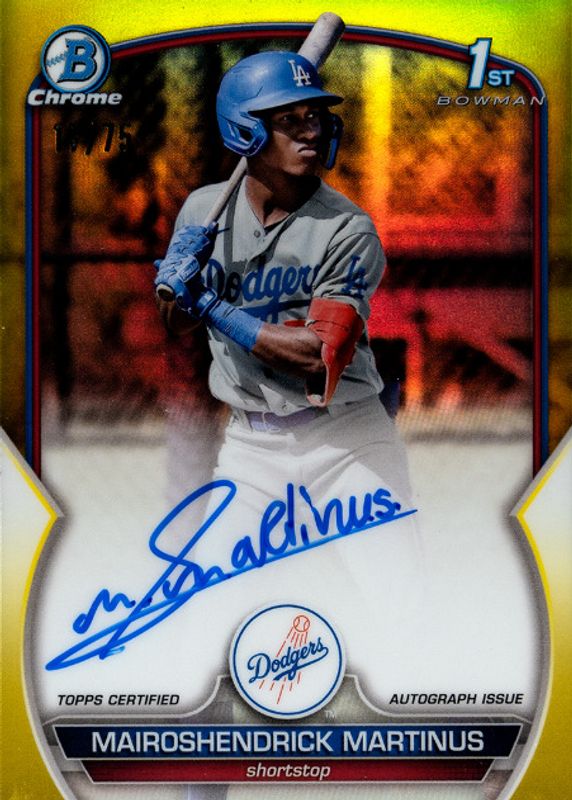 Mairoshendrick Martinus 2023 Bowman #CPA-MMA Chrome Prospect Auto - Yellow Refractor /75 (1st) RAW Price Guide