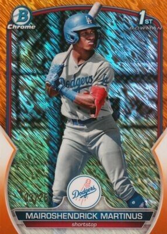 The Mairoshendrick Martinus 2023 Bowman #BCP-55 Chrome Prospects - Orange Shimmer Refractor /25 (1st) card in Raw condition has not changed in price in the last 30 days.