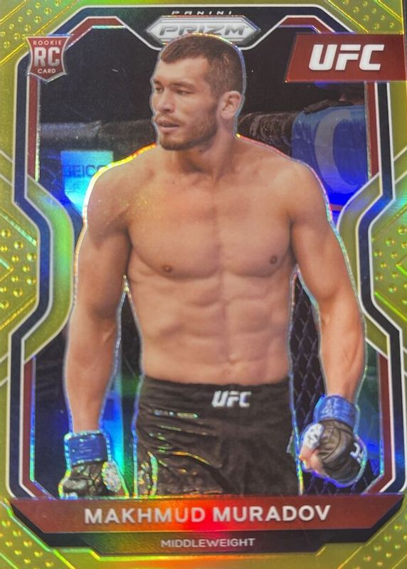 The Makhmud Muradov 2021 Prizm UFC #55 Gold /10 Rookie card in Raw condition has not changed in price in the last 30 days and was last sold for $1,900.00 .