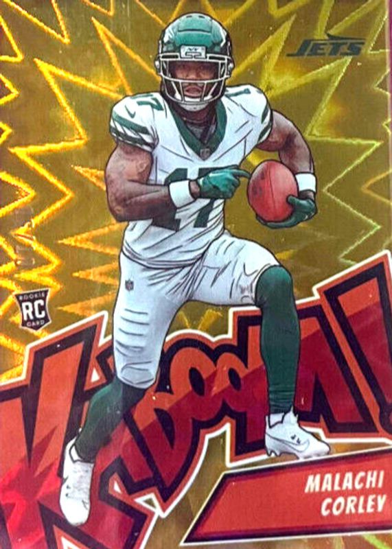 The Malachi Corley 2024 Absolute #20 Kaboom! (Vertical) - Gold /10 Rookie card in Raw condition has not changed in price in the last 30 days and was last sold for $597.48 .