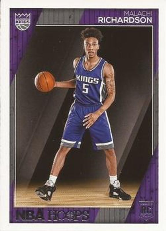 The Malachi Richardson 2016 Hoops #279 Red Back Rookie card is 1 of 19 Malachi Richardson's card variations in the 2016 Hoops set being tracked by Sports Card Investor, including Base, Blue, Teal Explosion, Green /149, and Silver /99.