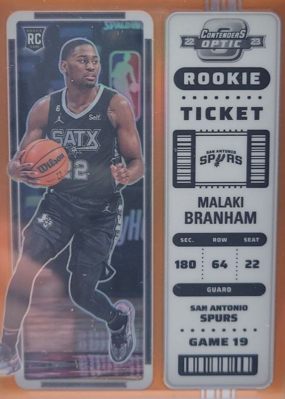 2022-23 MALAKI BRANHAM 17/49 PANINI CONTENDERS OPTIC ORANGE ROOKIE RC #14 TICKET