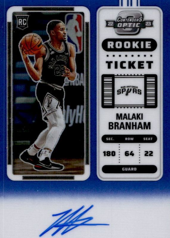 2022-23 PANINI CONTENDERS OPTIC MALAKI BRANHAM RC ROOKIE AUTO BLUE #D 23/49