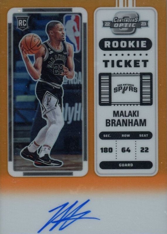 MALAKI BRANHAM 2022-23 CONTENDERS OPTIC ROOKIE TICKET ORANGE RC AUTO /25 Q1219