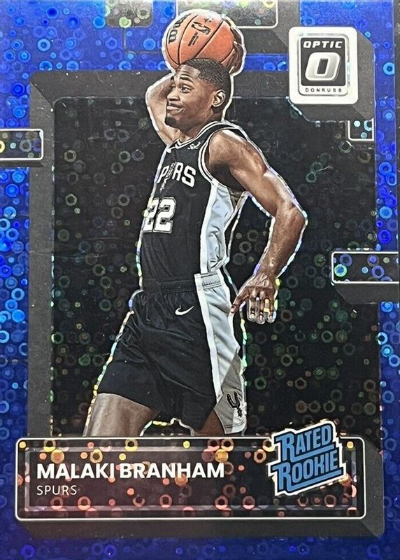 The Malaki Branham 2022 Optic #222 Fast Break Blue /49 Rookie card in Raw condition has not changed in price in the last 30 days and was last sold for $10.50 .