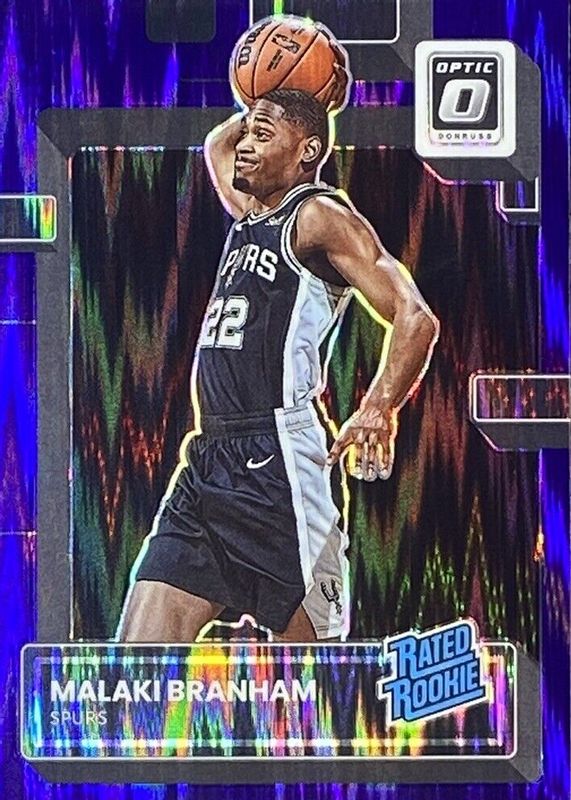 Malaki Branham 2022-23 Donruss Optic Rated Rookie Purple Shock SP #222-SPURS