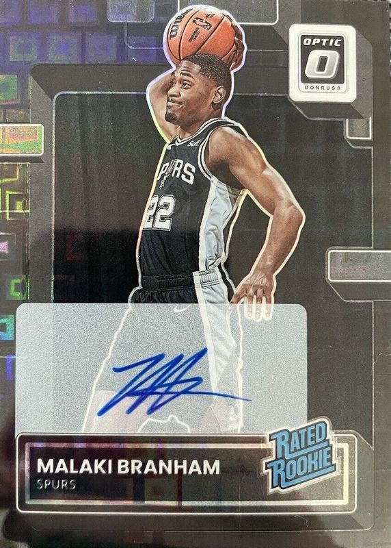 The Malaki Branham 2022 Optic #222 Rated Rookie Signatures - Black Pandora /25 card in Raw condition has not changed in price in the last 30 days and was last sold for $45.00 .