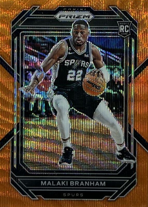 The Malaki Branham 2022 Prizm #230 Orange Wave /60 Rookie card in Raw condition has not changed in price in the last 30 days and was last sold for $20.00 .