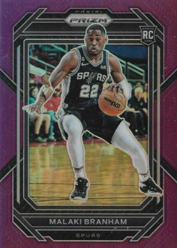 MALAKI BRANHAM 2022-23 PANINI PRIZM ROOKIE PURPLE SPURS #230 RC /99 Q2849