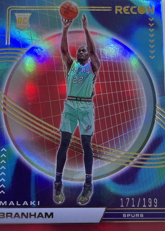 This card is 1 of 38 Malaki Branham's card variations in the 2022 Recon set being tracked by Sports Card Investor, including Base, Holo, Pink, Bronze /299, and Blue /99.