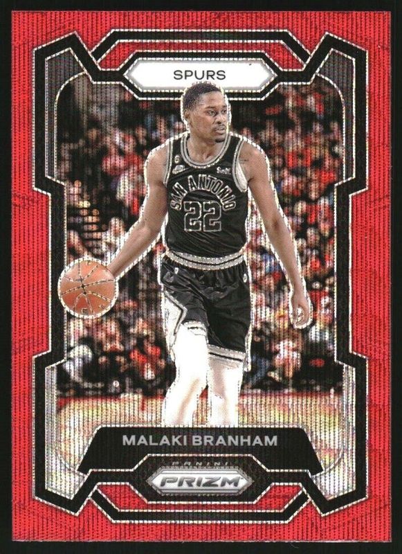 The Malaki Branham 2023 Prizm #270 Ruby Wave card is 1 of 74 Malaki Branham's card variations in the 2023 Prizm set being tracked by Sports Card Investor, including Base, Blue Wave, Choice Blue Yellow Green, Fast Break, and Green.