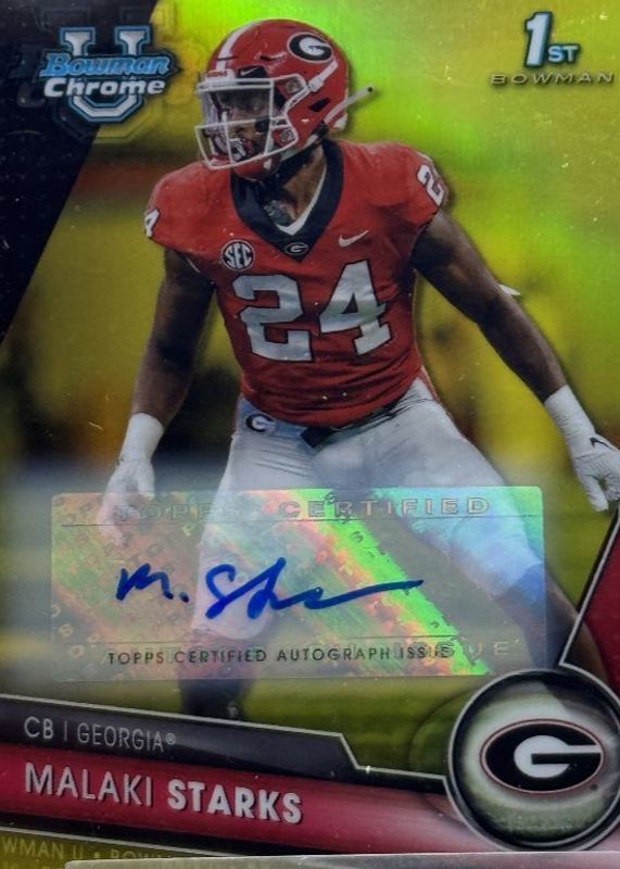 2023 Bowman Chrome University Malaki Starks Yellow Refractor 1st Auto #/75