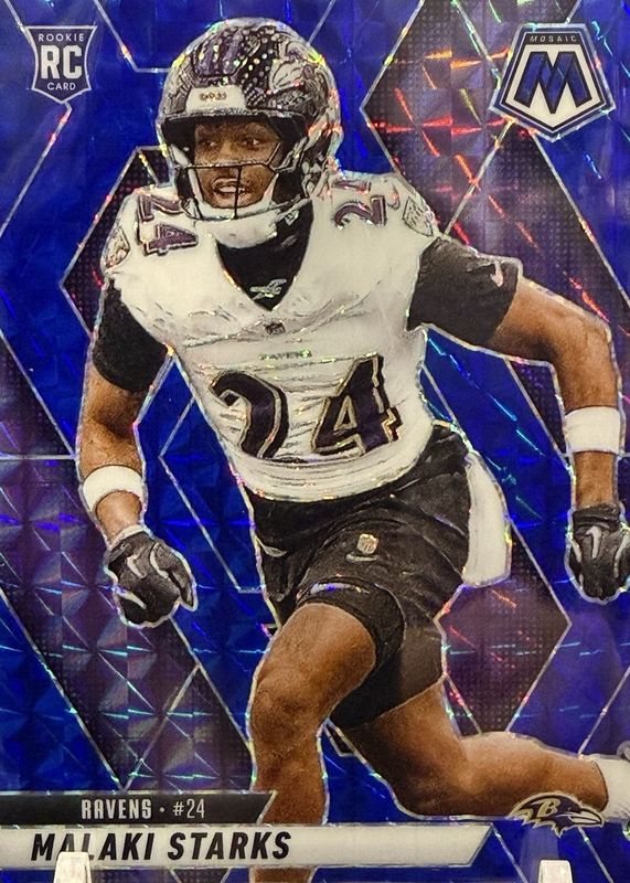 The Malaki Starks 2025 Mosaic #347 Blue /99 Rookie card in Raw condition has not changed in price in the last 30 days and was last sold for $2.25 .
