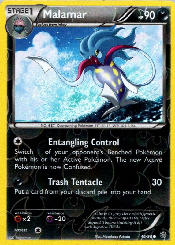 The Malamar 2015 XY: Ancient Origins #46/98 Reverse Holo card in Raw TCG (Lightly Played) condition has not changed in price in the last 30 days and was last sold for $1.81 .