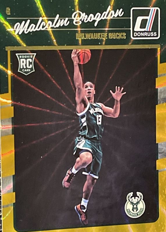 The Malcolm Brogdon 2016 Donruss #179 Orange Holo Laser Rookie card in Raw condition has not changed in price in the last 30 days and was last sold for $9.99 .