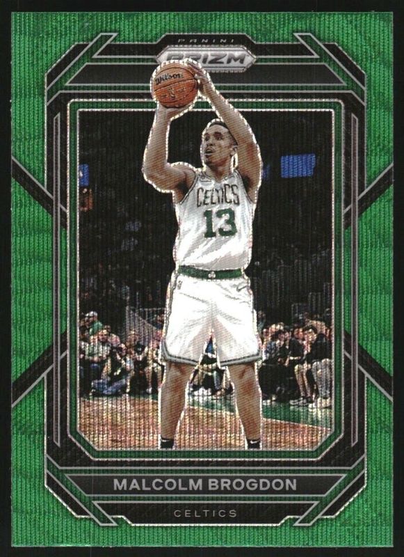 The Malcolm Brogdon 2022 Prizm #6 Green Wave card is 1 of 53 Malcolm Brogdon's card variations in the 2022 Prizm set being tracked by Sports Card Investor, including Base, Blue Wave, Choice Blue Yellow Green, Fast Break, and Green.
