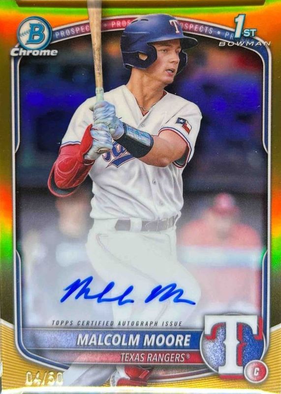 Best Prices Available For Sale of Malcolm Moore 2025 Bowman #CPA-MMO Chrome Prospect Auto - Gold Refractor /50 (1st)