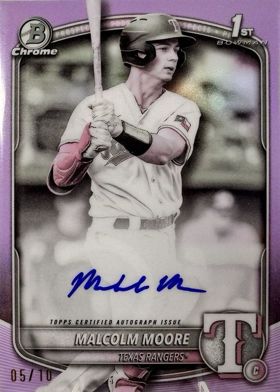 Malcolm Moore 2025 Bowman #CPA-MMO Chrome Prospect Auto - Pearl Refractor /10 (1st) RAW Price Guide
