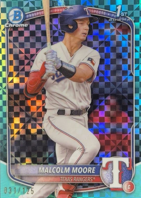 Malcolm Moore 2025 Bowman #BCP-129 Chrome Prospects - Aqua X-Fractor /125 (1st) RAW Price Guide